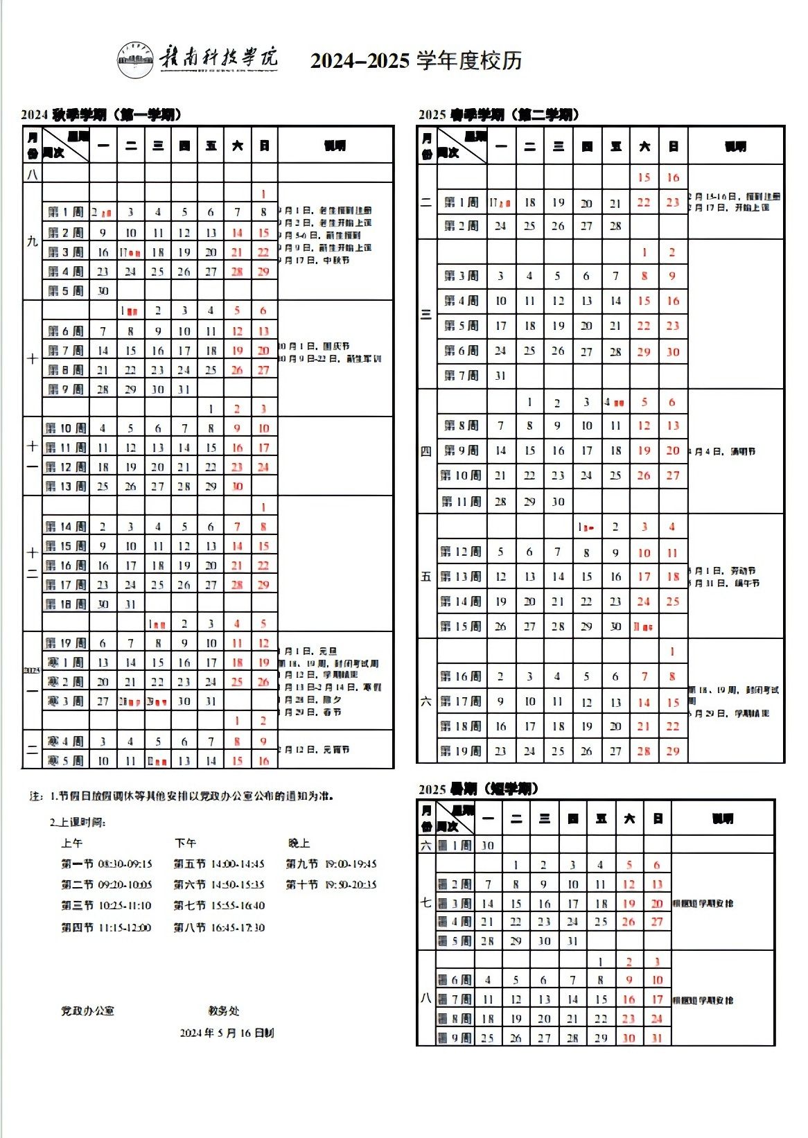 威廉希尔体育登录入口2024-2025学年度校历