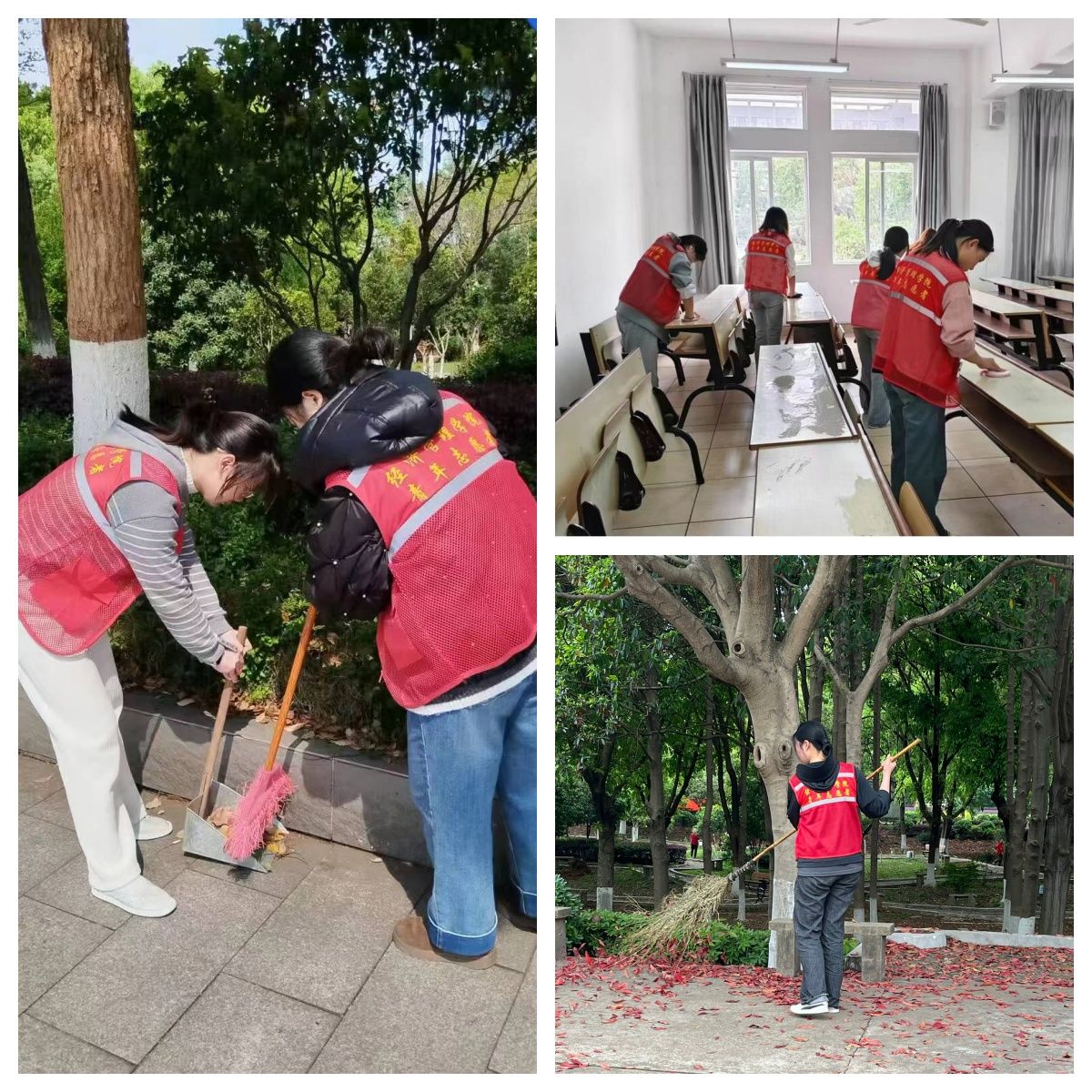 活动中,经管学院受助学子共12人参与本次校园公益活动,大家满怀热忱分工协作,各展其长。有的细心擦拭桌面,不放过任何污渍;有的仔细清扫道路上的垃圾,让每一处角落都干净整洁;有的精心整理绿化带中的杂物,将杂物一一规整。同学们不怕脏累,专注投入,以精益求精的态度对待每一处细节。经过同学们的努力,原本杂乱的课桌变得干净整洁,教室环境焕然一新,校园氛围也愈发温馨。
